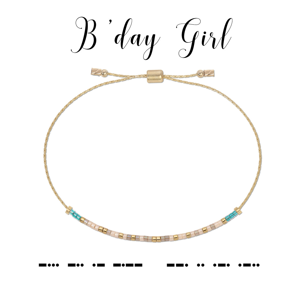 For the woman who is always celebrating others -- today is her day! This birthday message features a new design with three teal beads on either side of the Morse code message.
