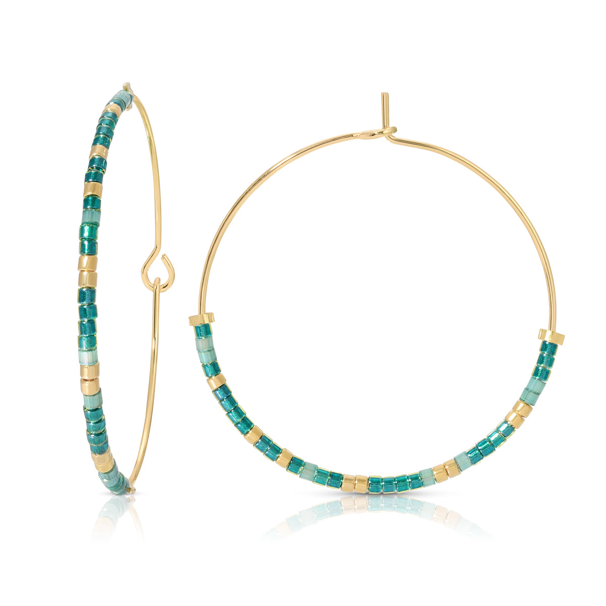 Our hoop earrings are gold-filled and 35mm (1.3") wide.
