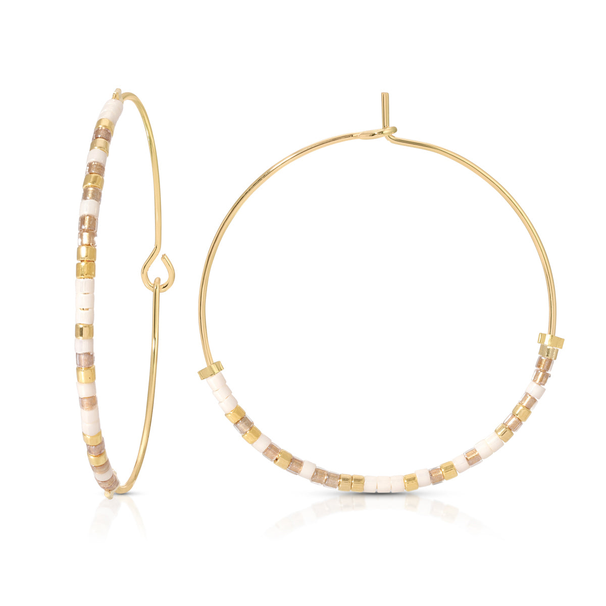 Our hoop earrings are gold-filled and 35mm (1.3") wide.