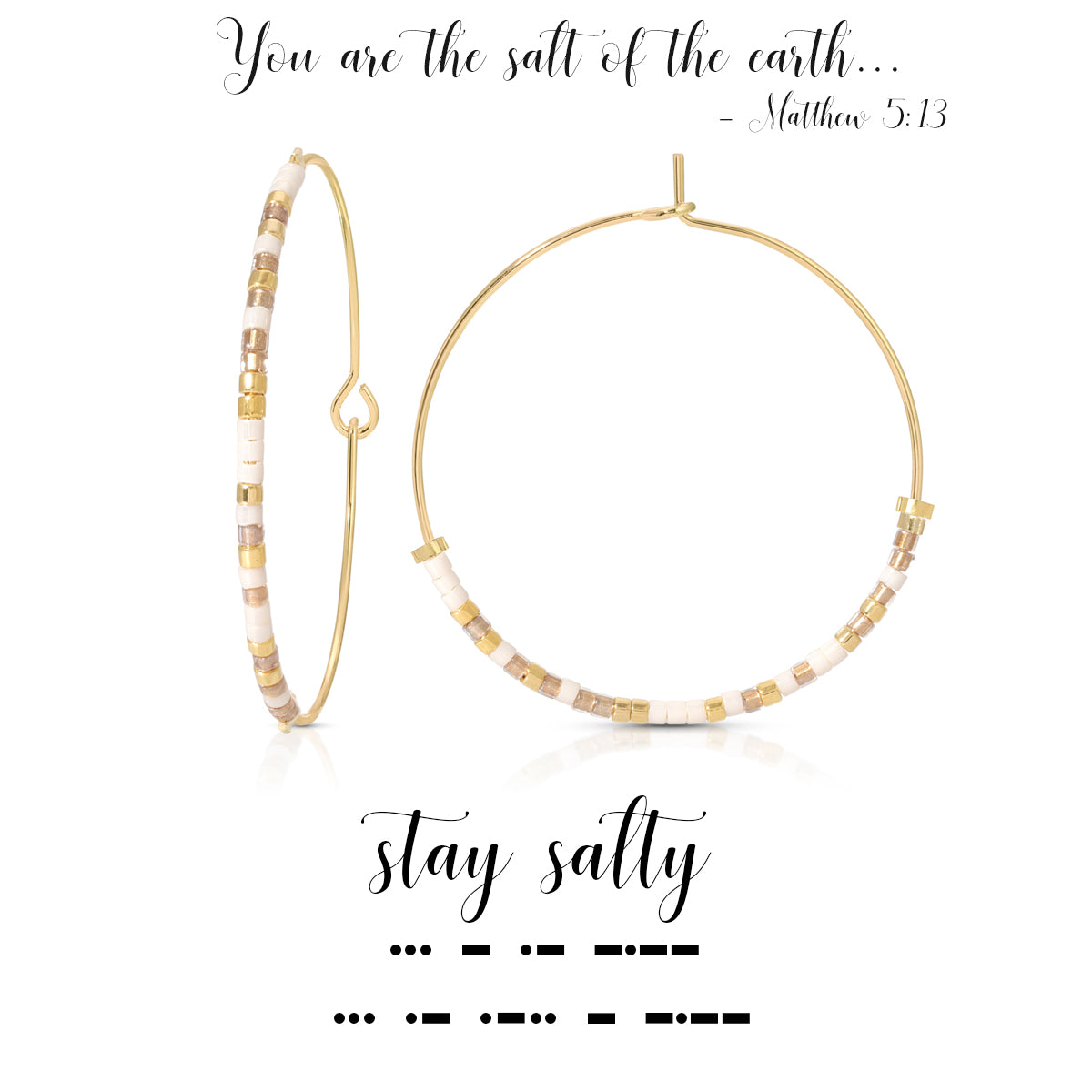 Introducing "Stay Salty"—inspired Morse code earrings crafted to remind you of the empowering words of Matthew 5:13: “You are the salt of the earth.” Just as salt enhances and preserves, this piece symbolizes your unique value and positive influence in the world. Crafted to celebrate faith and courage, "Stay Salty" encourages us to live boldly, share kindness generously, and bring out the best in those around us.