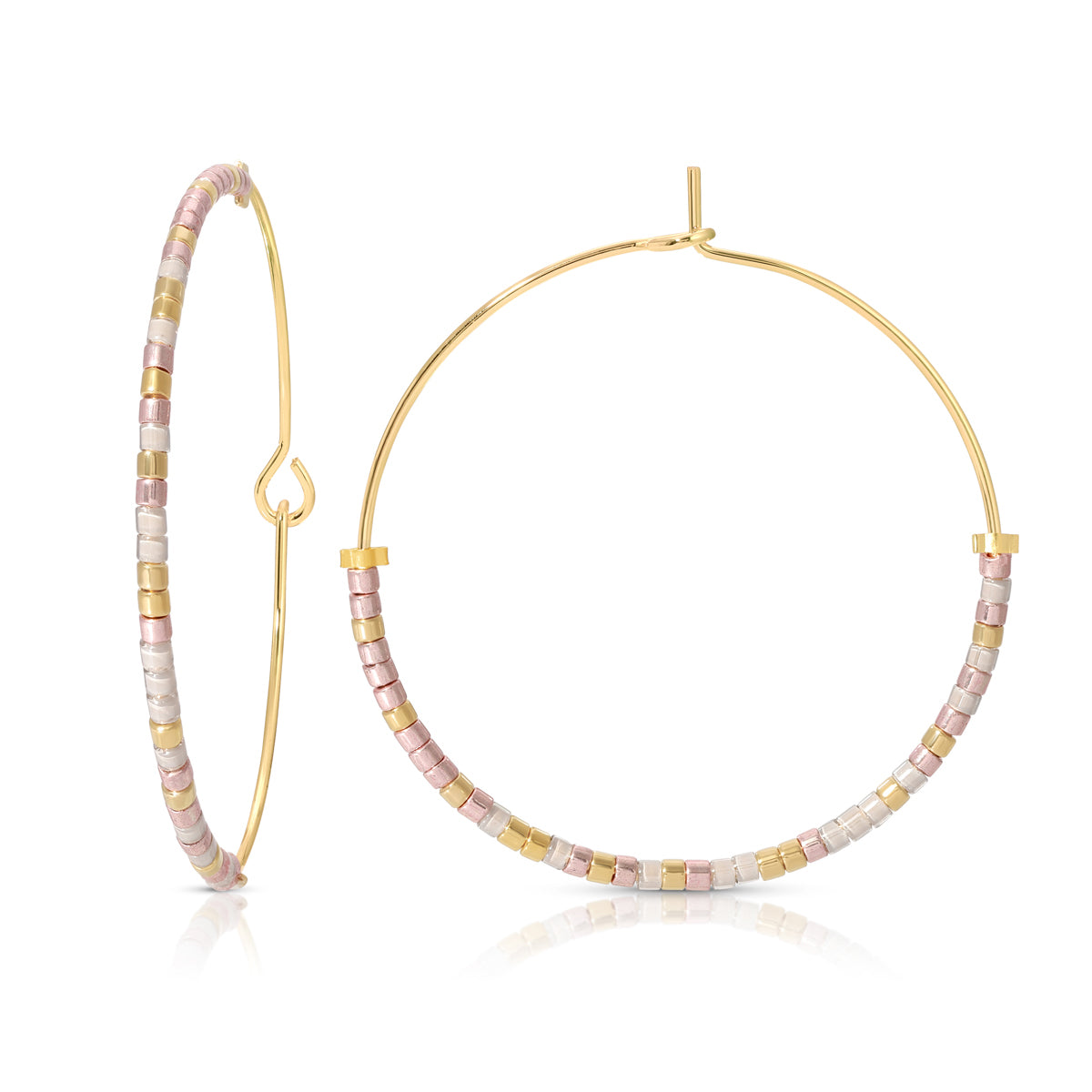 Our hoop earrings are gold-filled and 35mm (1.3") wide.