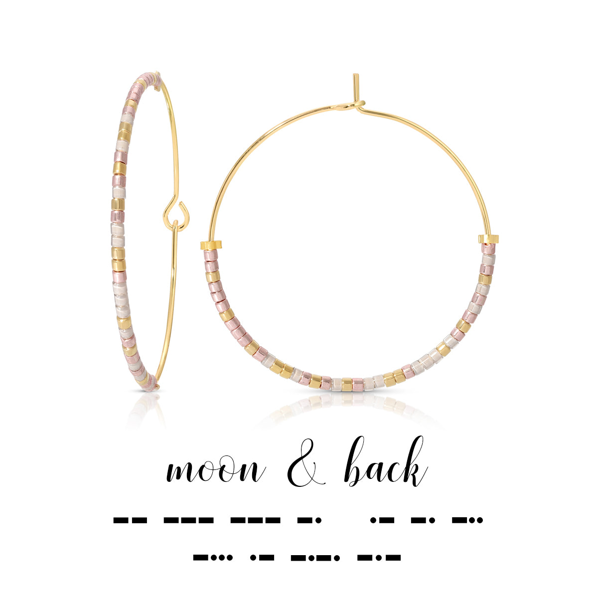 Moon and Back is a playful Morse code earring design that definitively answers the age old question "Guess how much I love you?" And wow, people really love to give and get this gift!