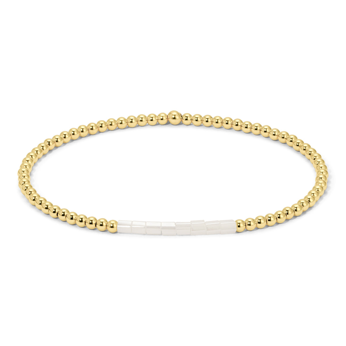 Our Color Bar Stackmate bracelets pair faceted glass beads with a continuous strand of 14K gold-filled beads, creating a vibrant pop of color with a touch of sparkle.