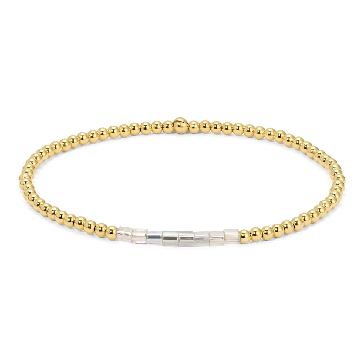 Our Color Bar Stackmate bracelets pair faceted hex-cut glass beads with a continuous strand of 14K gold-filled beads, creating a vibrant pop of color with a touch of sparkle.