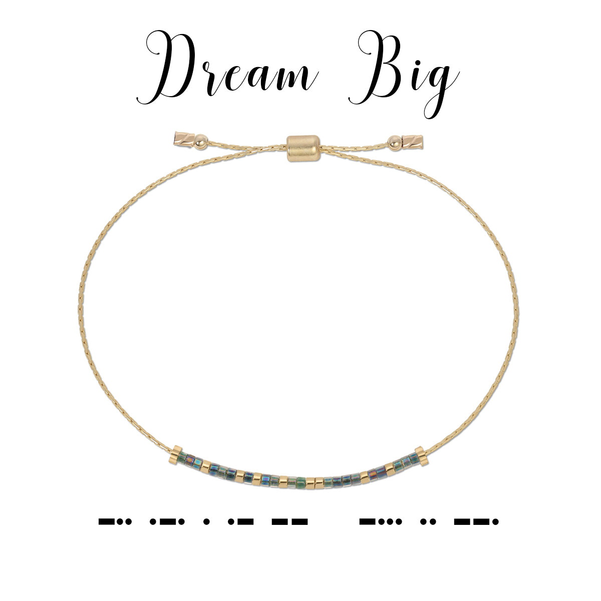 She'll reach for the stars wearing Dream Big, a Morse code bracelet encoded using two beautiful shades of iridescent beads.